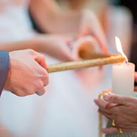 Nesta cerimônia são utilizadas três velas, duas laterais representando cada noivo, e uma ao centro, representando a nova família que se constitui.