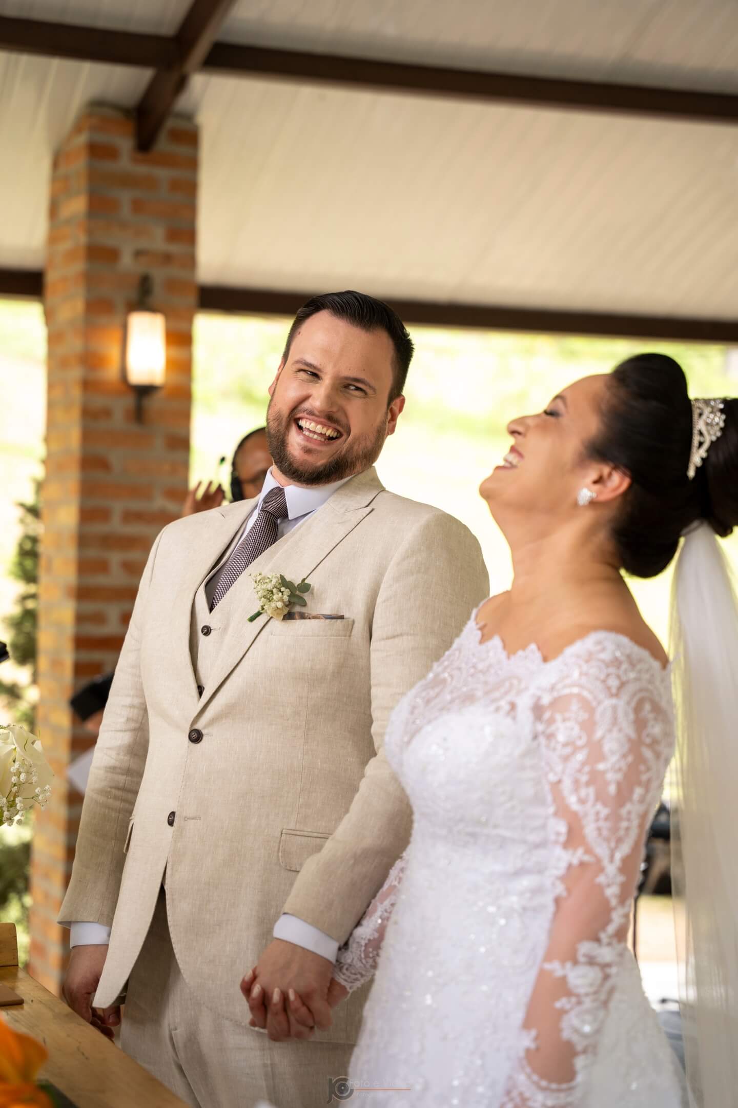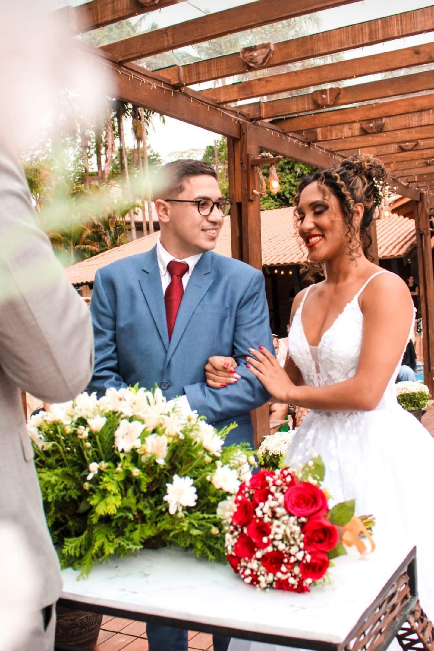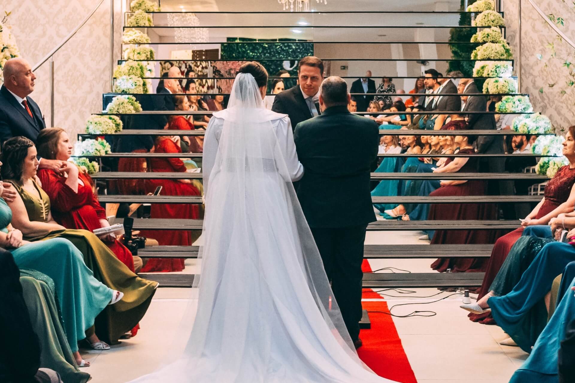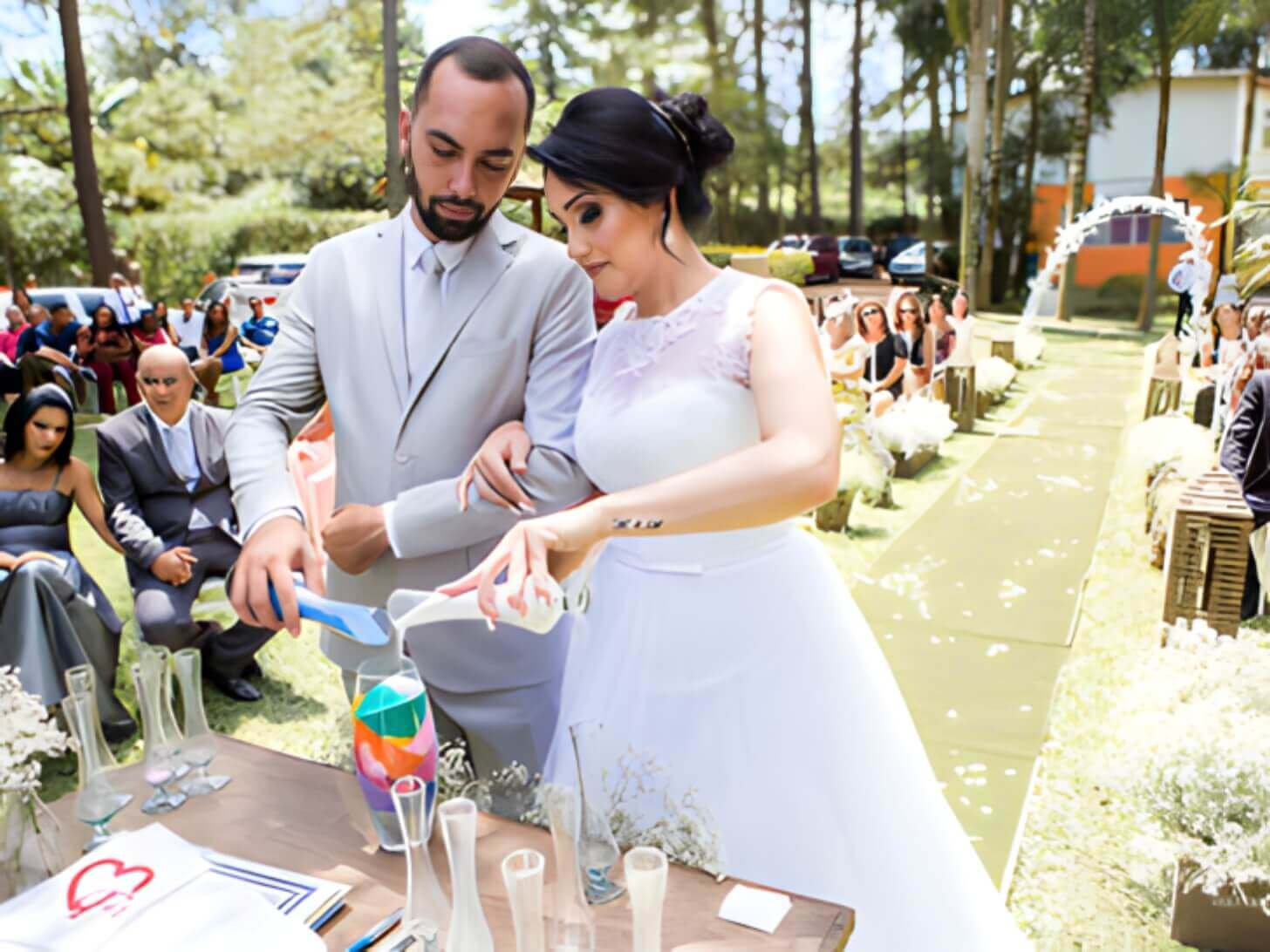 A cerimônia não seguirá o rito específico de uma religião, mas poderá incorporar elementos e tradições presentes nas crenças de cada um dos noivos. A opção por um celebrante de casamento é ideal para casais de religiões diferentes.