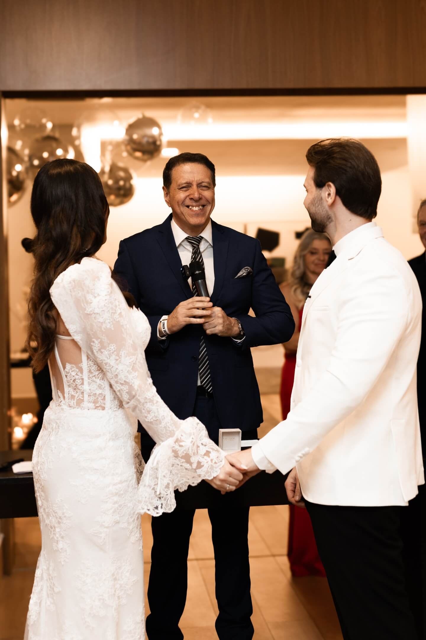 Como celebrante profissional, utiliza essa bagagem para criar cerimônias com roteiros exclusivos, construídos a partir da essência e dos valores de cada casal. O objetivo é garantir um momento leve, envolvente e verdadeiro, com uma condução que emocione de forma autêntica. Será um privilégio para ele fazer parte da sua história.